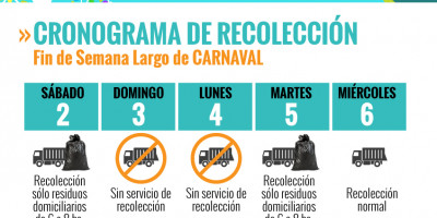 Así será la Recolección de Residuos en el fin de semana largo de Carnaval