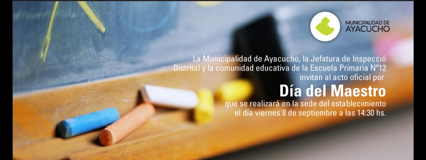La Municipalidad de Ayacucho reitera su invitación a toda la comunidad para concurrir a cada uno de los diferentes actos en referencia al Día del Maestro, que se desarrollarán en nuestra ciudad.
