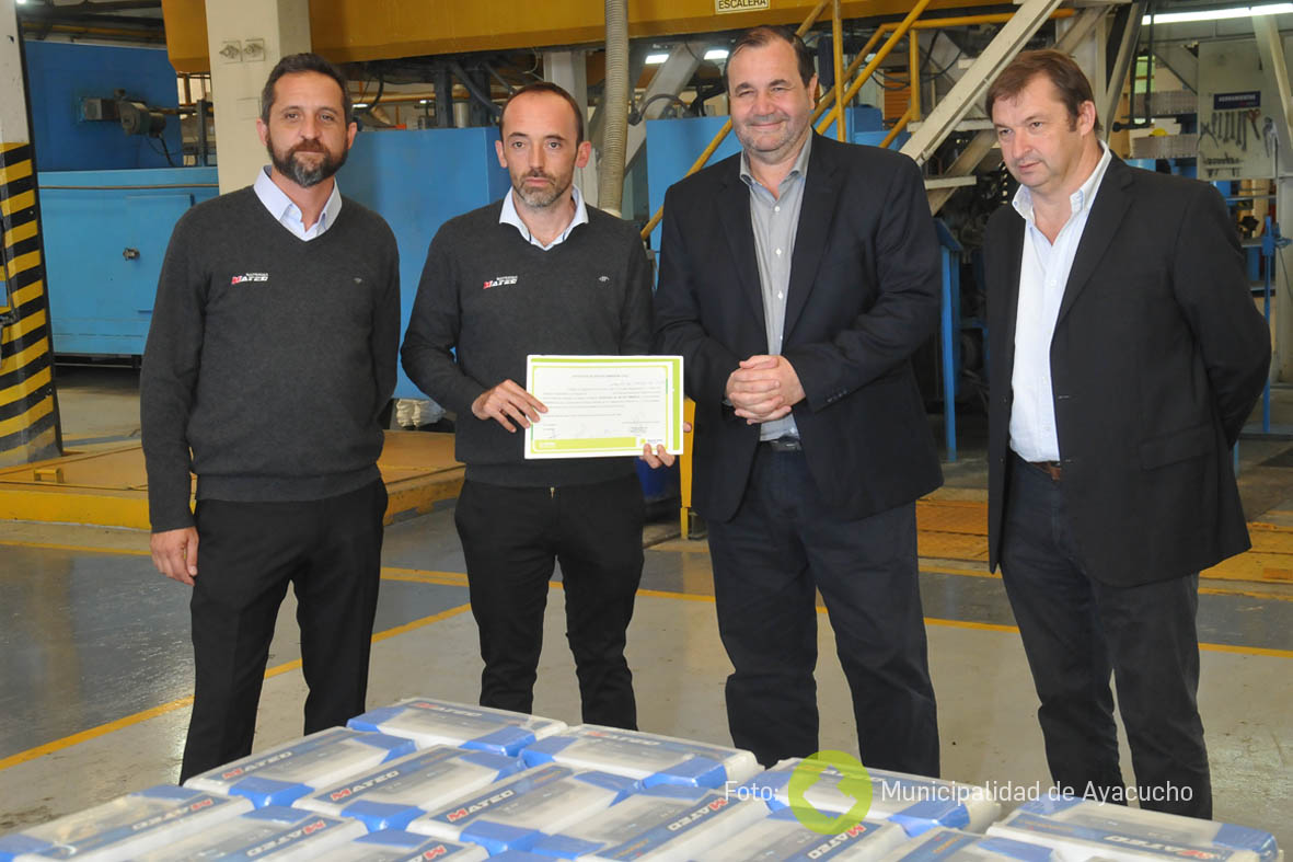 Un día muy especial para la familia Mateo fue el de este martes 14 de marzo, porque recibieron la anunciada visita de funcionarios del Organismo Provincial de Desarrollo Sostenible, encabezados por su titular, el Dr. Ricardo Pagola, quienes acompañados por el Intendente Municipal, Prof. Pablo Zubiaurre, hicieron entrega del Certificado de Aptitud Ambiental en reconocimiento por haber alcanzado las normas y medidas de seguridad en el cuidado del medio ambiente a la principal fábrica de la ciudad.
