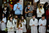 Seguidamente la alumna Abril Sosa compartió testimonios de distintos autores, dejándole paso a los estudiantes Tiziana Arias y Fermín Oscoz, que interpretaron los temas musicales "Milonga del trovador" y "Como la cigarra".