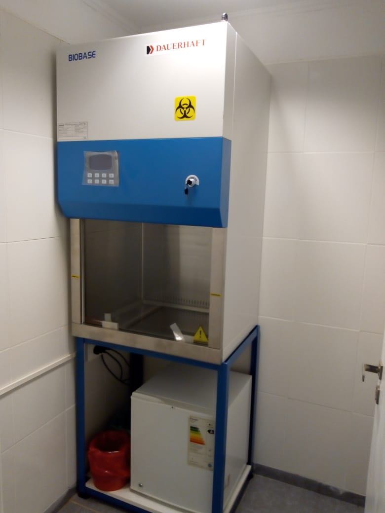 Esta cabina tiene la ventaja de trabajar de modo seguro, con materiales potencialmente contaminados con agentes patógenos. Esta flamante adquisición tiene todas las funciones que son operadas a través de una gran pantalla en la que el usuario puede encontrar detalles del estado de la cabina, como el flujo de aire ascendente y descendente, temperatura y humedad del área de trabajo, presión en los filtros, tiempo de trabajo de la lámpara UV, tiempo de uso de los filtros y aviso de cambio de filtros.