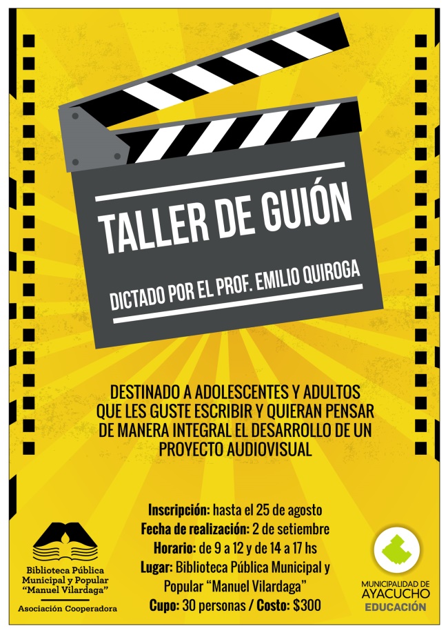Por otra parte, la Biblioteca y su Asociación Cooperadora invitan a los interesados en escribir y pensar de manera integral el desarrollo de un proyecto audiovisual, a concurrir a un Taller que propone convertir una idea en un guión.