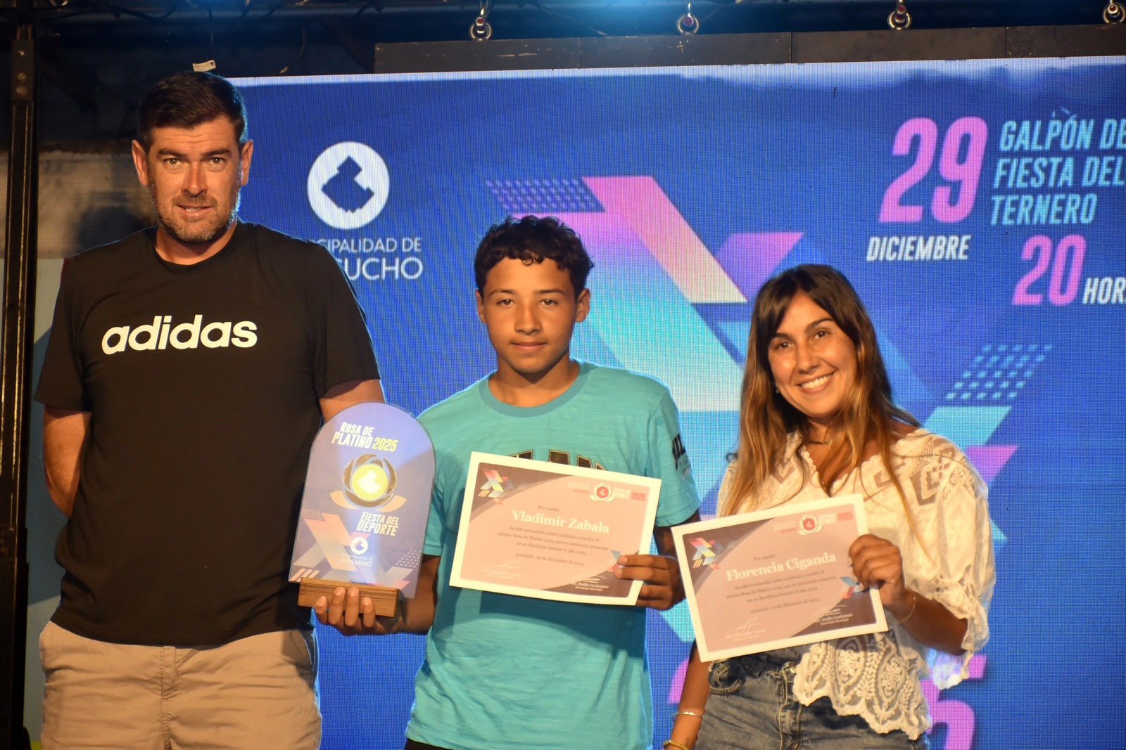 El joven ciclista Lucas Jaime fue elegido como Rosa de Oro este lunes por la noche en la Fiesta del Deporte que se desarrolló ante un Galpón de la Fiesta del Ternero repleto.
