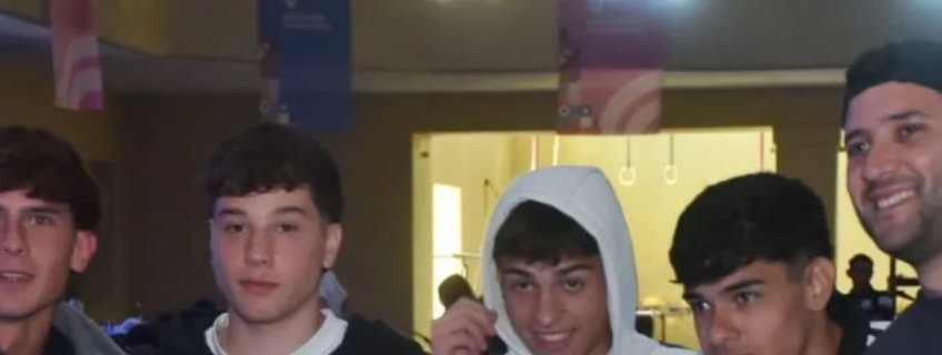 Los representantes ayacuchenses Lionel Ceñal, Lautaro Ferrari, Juan Bautista Pilatti y Benjamín Ismael, junto al profe Cristian Santillán, se consagraron campeones en Deportes Electrónicos