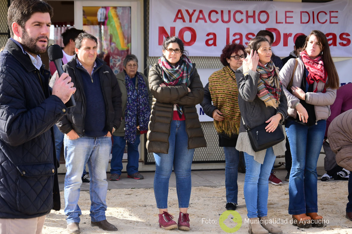 Durante la jornada el Intendente Municipal Lic. Emilio Cordonnier manifestó la importancia de sumar esfuerzos entre todos los actores sociales para dar la pelea contra este flagelo que afecta a la sociedad toda, sin distinciones, destacó las tareas que se planifican desde distintas áreas municipales para informar sobre el tema y generar conciencia, como así también generar opciones desde el deporte, la recreación, la cultura, para el fomento de una vida saludable, y valoró el trabajó de las instituciones como la ONG Vida y los jóvenes que participan de la propuesta de "Ayacucho dice NO a las drogas".