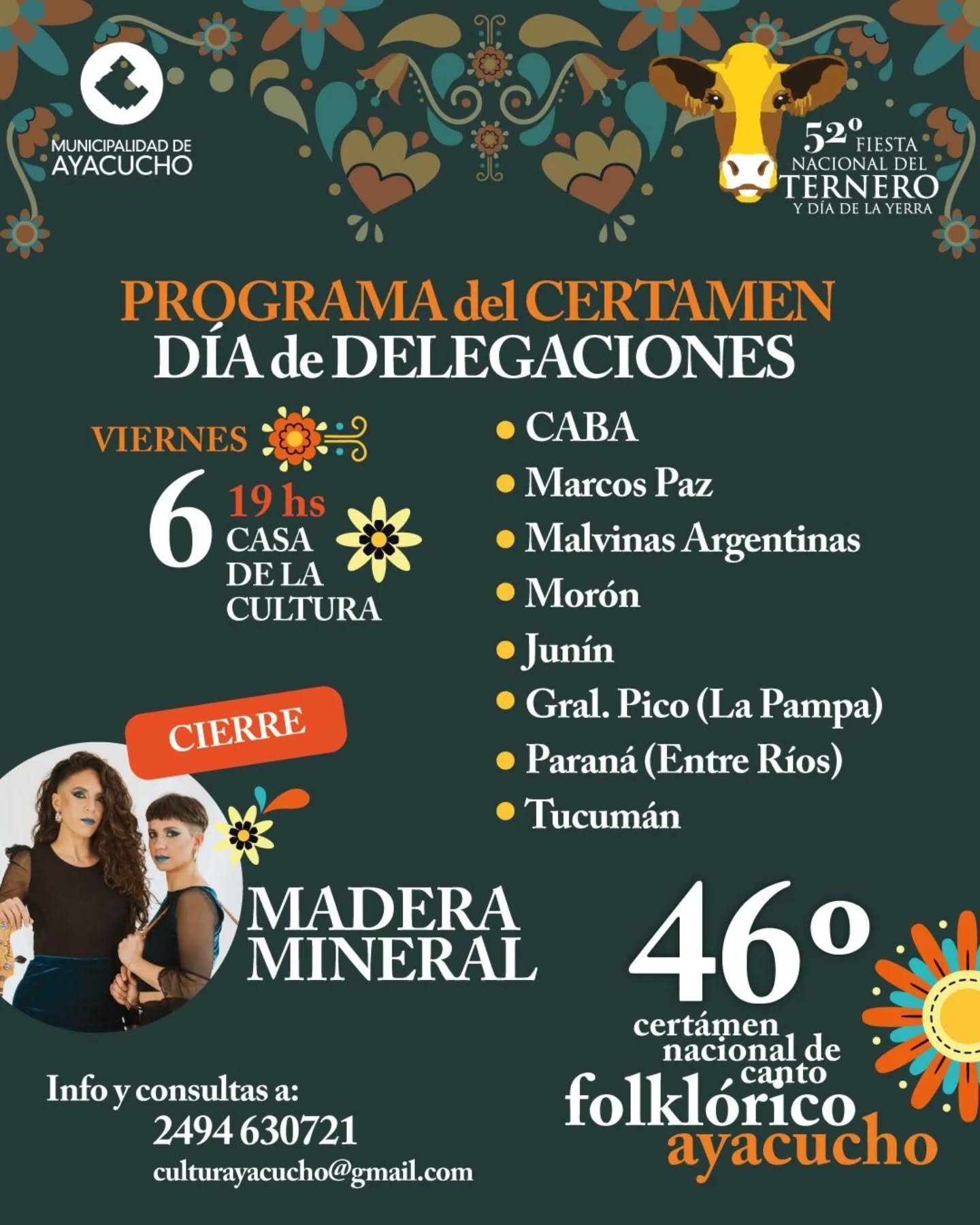 Desde el miércoles 4 al sábado 7 de marzo en Casa de la Cultura, se desarrollará el 46° Certamen Nacional de Canto Folklórico.