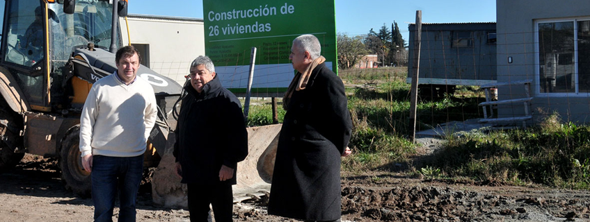 Ayer lunes 3 el Intendente Municipal, Prof. Pablo Zubiaurre, junto al Senador Provincial, Carlos Alberto Fernández, quien se encontraba de visita en nuestra ciudad, y representantes del Instituto de la Vivienda de la Provincia de Buenos Aires, recorrieron las obras del Plan Compartir 26 Viviendas y que como se expresaba, dado su avance, en algo más de un mes se estarán entregando a sus respectivos adjudicatarios.