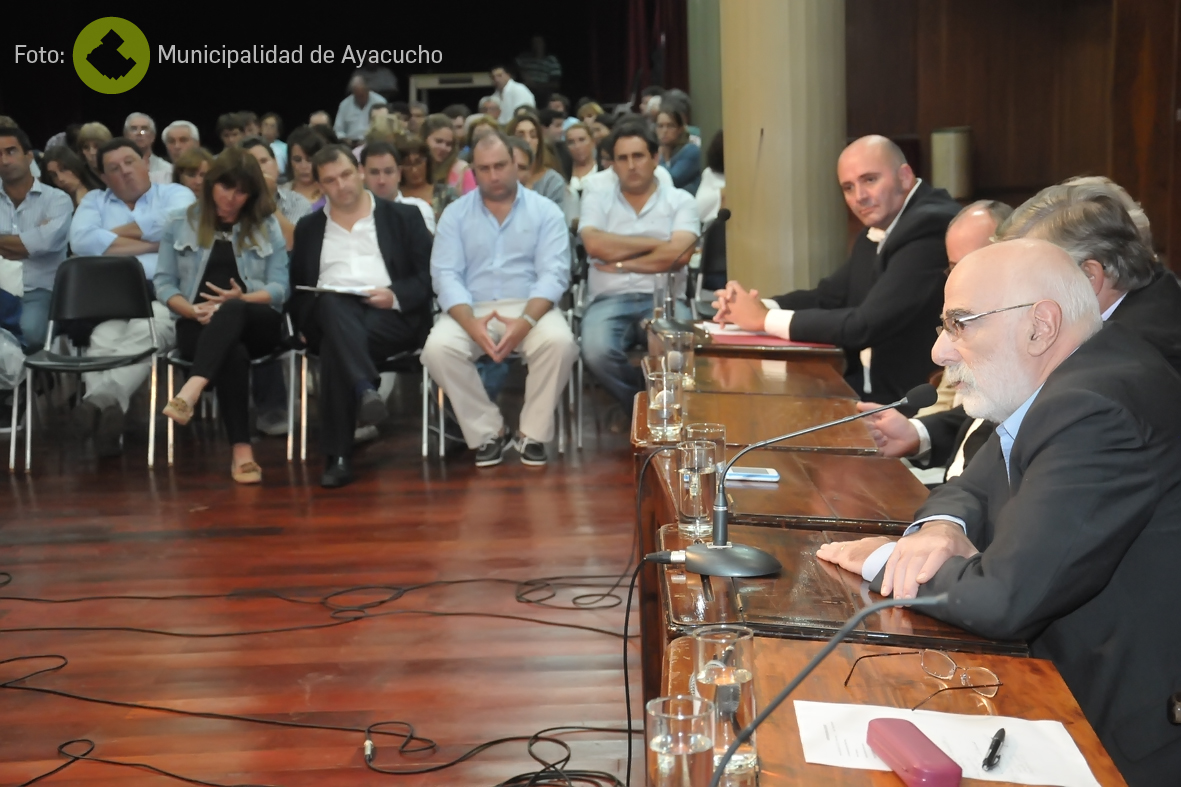 El primer tema explayado fue la Seguridad. “Inmersos en un contexto de avance creciente de la inseguridad desde hace al menos una década, en todo el país y la Provincia, Ayacucho sufre este flagelo para el que las soluciones no son simples. Se ha trabajado en estos años en el crecimiento de la dotación policial y la creación local de policías especializadas, tales como el Comando de Prevención Rural, la Comisaría de la mujer y la familia, Ia Policía Científica y la Policía Local. A la vez también se generaron adelantos en la Policía Comunal, Investigaciones y Comunicaciones. Todo ayuda, aunque hasta ahora nada alcanza para tener un Ayacucho libre de delitos. En materia de equipamiento de generó una Nueva Sala de Monitoreo que funciona las 24 hs y que monitorea más de 90 cámaras más las de dependencias municipales. Se compraron también 25 equipos de comunicaciones para la policía que realiza su trabajo en forma peatonal, se recibieron nuevos móviles y se incorporaron móviles municipales”. Al respecto agregó que se trabaja para esclarecer distinto hechos, tanto a través de la Policía de Investigaciones y Rural como desde la rama judicial, y anticipó que se prevé la inauguración de los Destacamentos policiales de la Delegación Oeste (Paraje El Cuco) y el Destacamento Fair para este mes de abril.