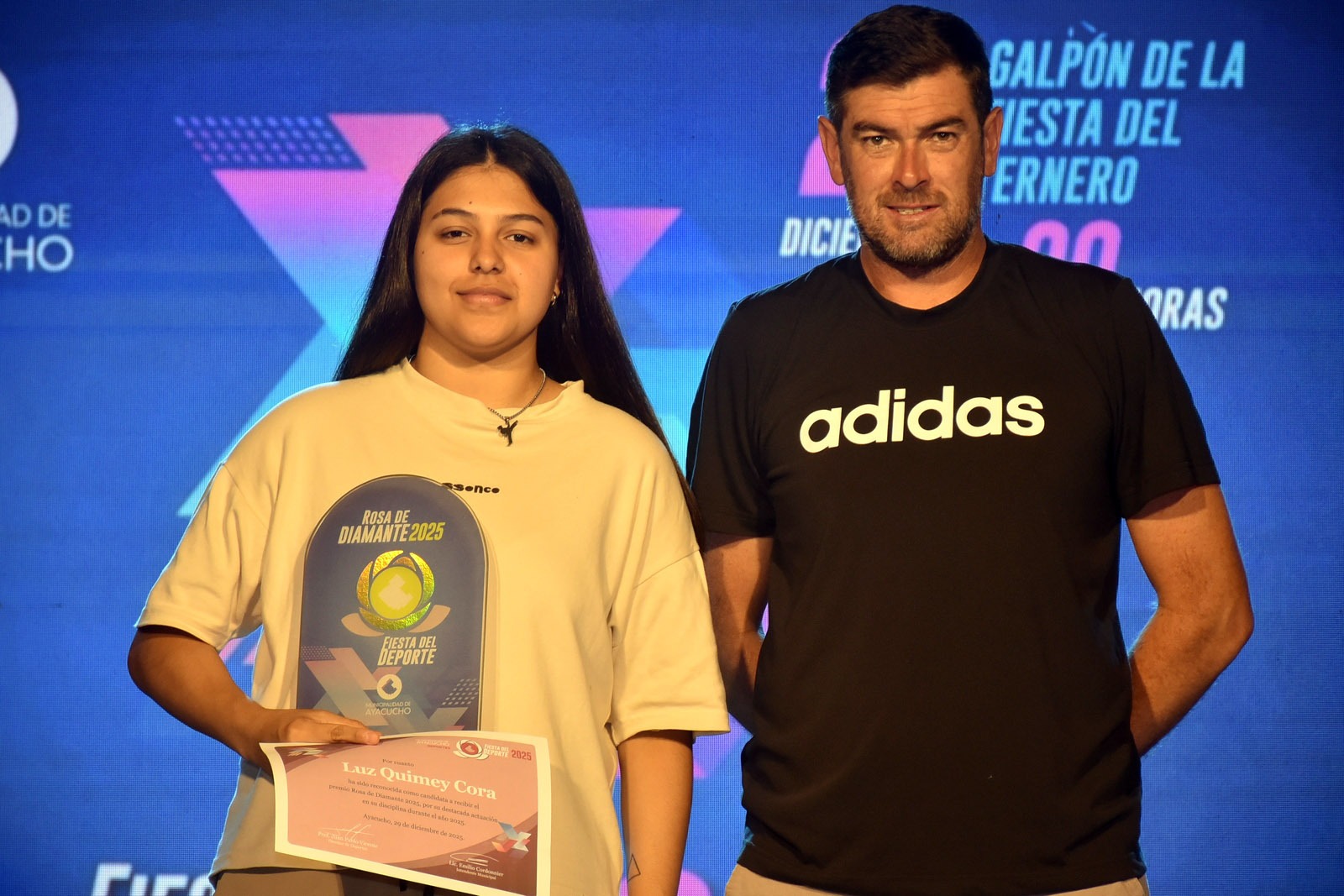 El joven ciclista Lucas Jaime fue elegido como Rosa de Oro este lunes por la noche en la Fiesta del Deporte que se desarrolló ante un Galpón de la Fiesta del Ternero repleto.